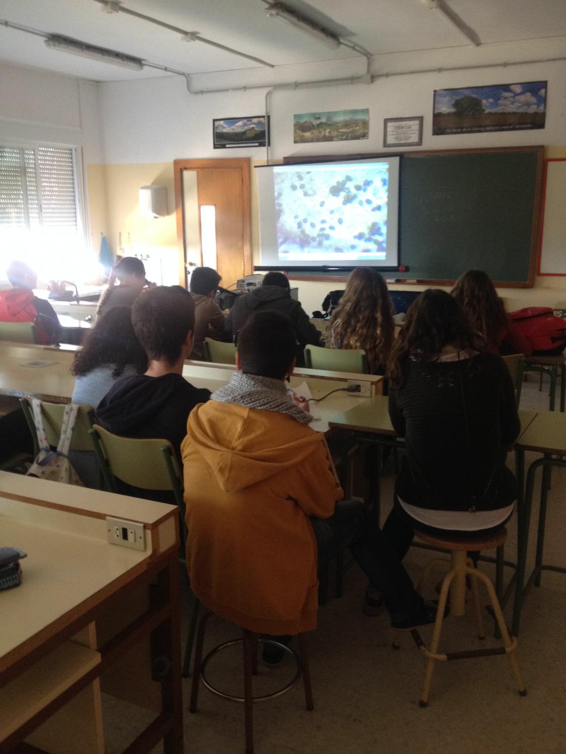Definitivamente al primero de Bachillerato de "ciencias" le gusta la investigación. De paseo por el centro elegimos muestras orgánicas para observar y nos planteamos nuevas hipótesis como ¿Siempre se mantienen en el mismo estado?¿Se degradan de forma natural?¿Se pueden observar sus partículas? y la pregunta anacrónica del alumnado de esta edad ¿Qué utilidad tiene todo esto?. Pues una vez en el laboratorio hemos preparado una práctica dividida en fases y con la que cubriremos varias de estas preguntas. Se trata de la observación de un organismo muy curioso, en concreto un hongo comestible y su degradación orgánica (con su olor correspondiente). Resultado muy satisfactorio. Por grupos, tras la recolecta hemos dejado el tiempo necesario para la degradación de los ejemplares y una vez obtenidas las muestras las hemos observado primero de forma individual y posteriormente proyectándolas en la pantalla del laboratorio, viéndose claramente las esporas. Conclusión, este liquido obtenido de color oscuro es reconocible tanto a lupa como a microscopía y lo que es mejor, si no nos comemos esta seta antes de degradarse (es comestible), podemos dejarla a su aire y convertirla por ejemplo... en tinta?
