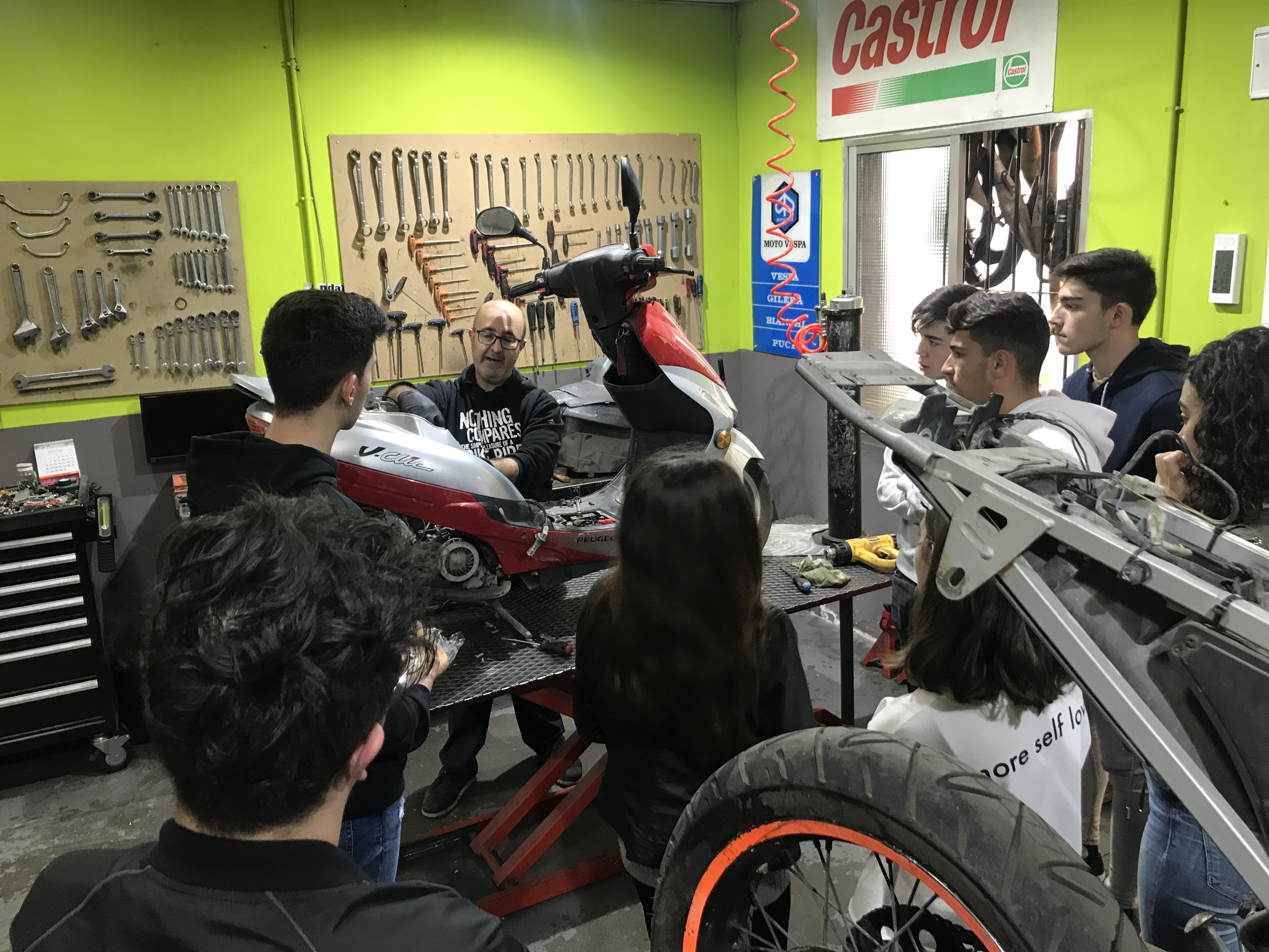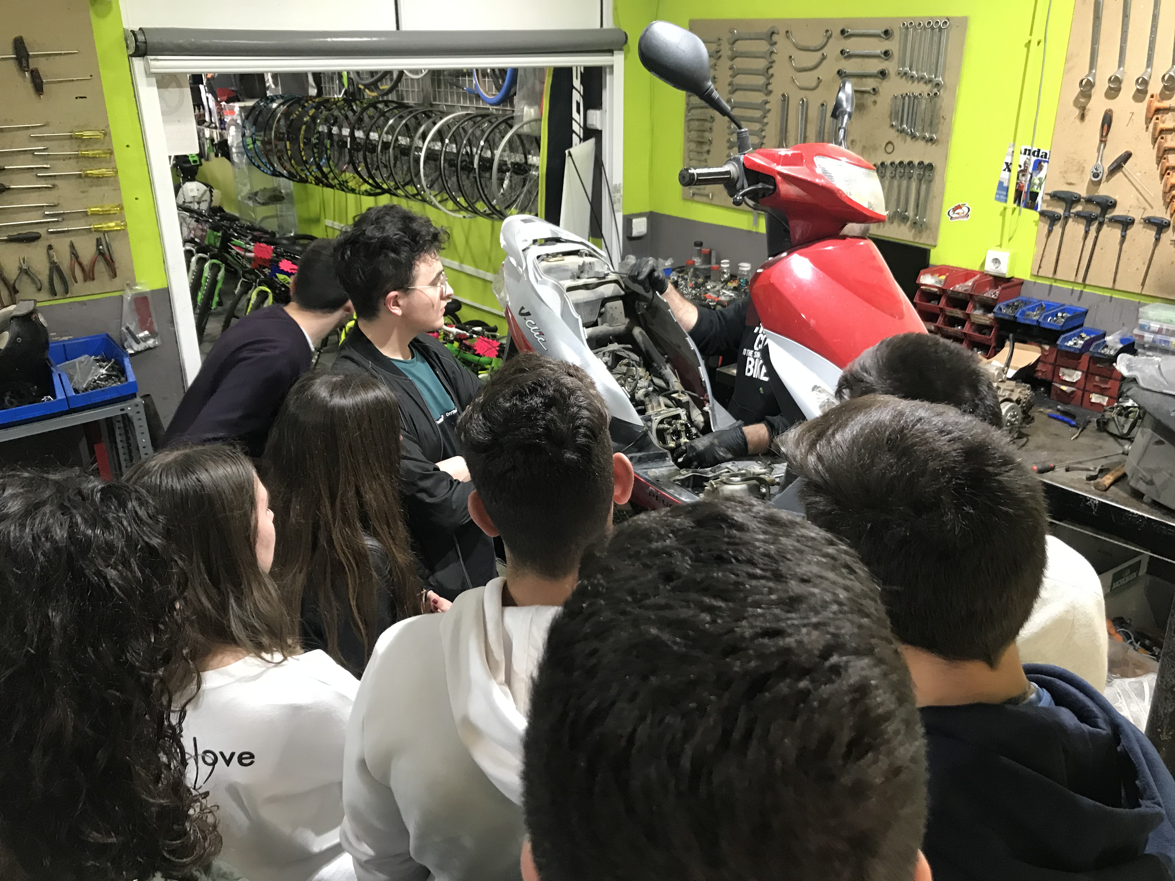 Los alumnos/as de 2º Bachillerato que cursan la materia Tecnología Industrial II, visitan el taller Motos y Bicicletas Pernía de la localidad de Olvera, gracias a la colaboración del empresario Juan José Pernía Usagre, que nos brindó la oportunidad de conocer la mecánica de los motores de dos y cuatro tiempos, el inicio y evolución de su negocio, así como la perspectiva de la movilidad en el futuro inmediato con los motores híbridos y eléctricos.