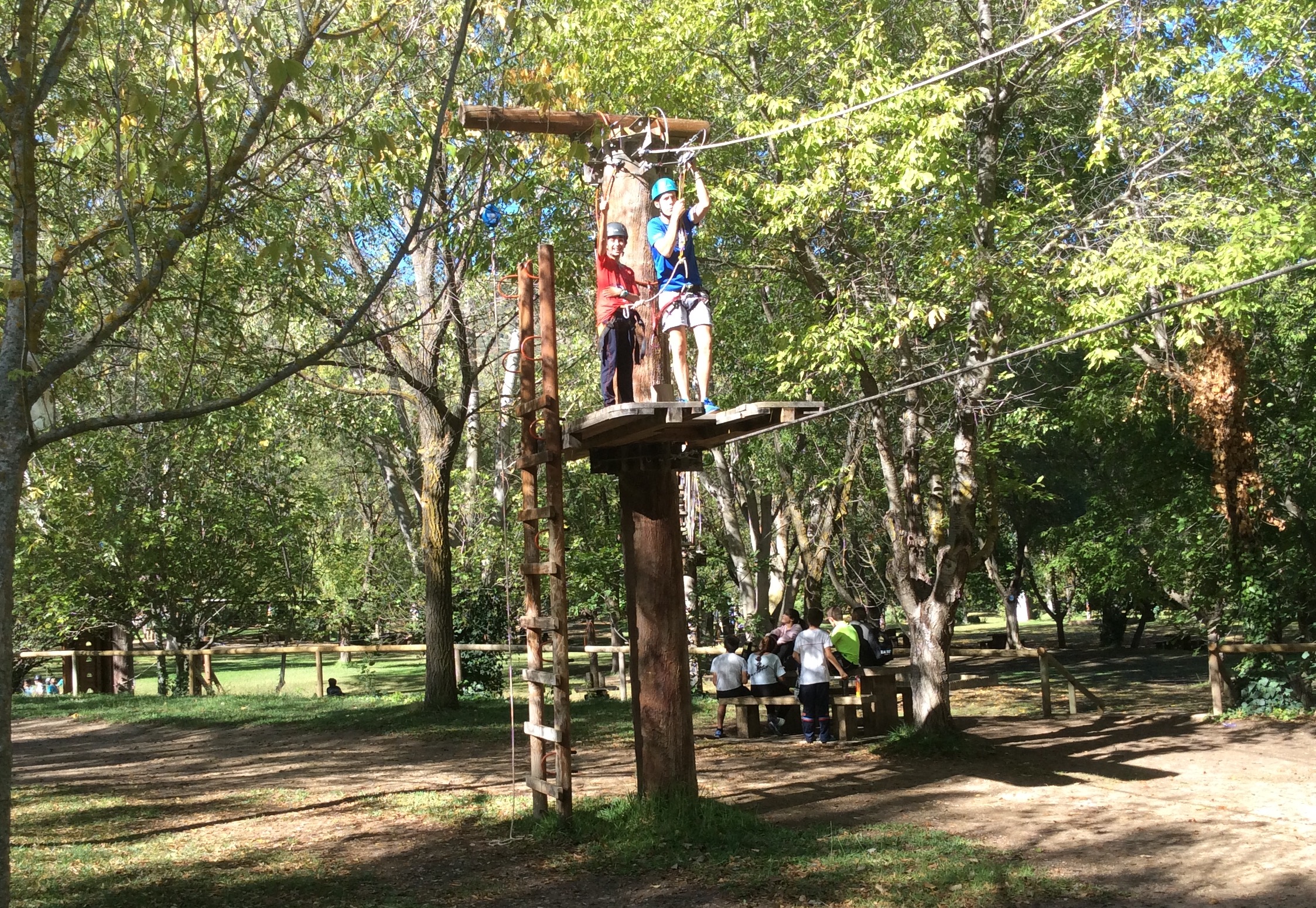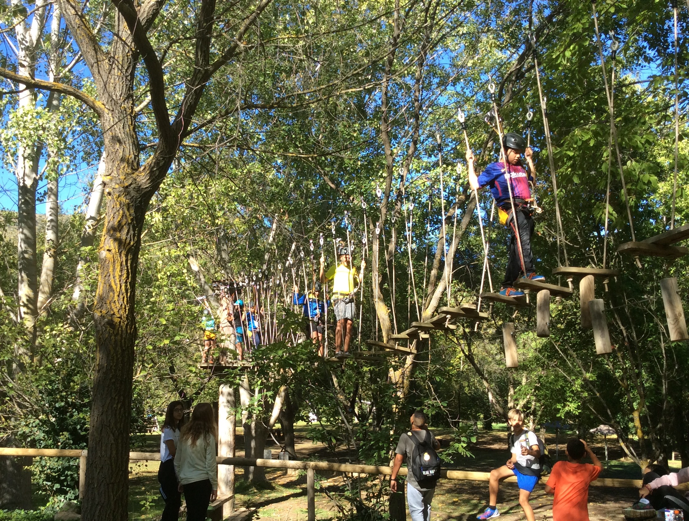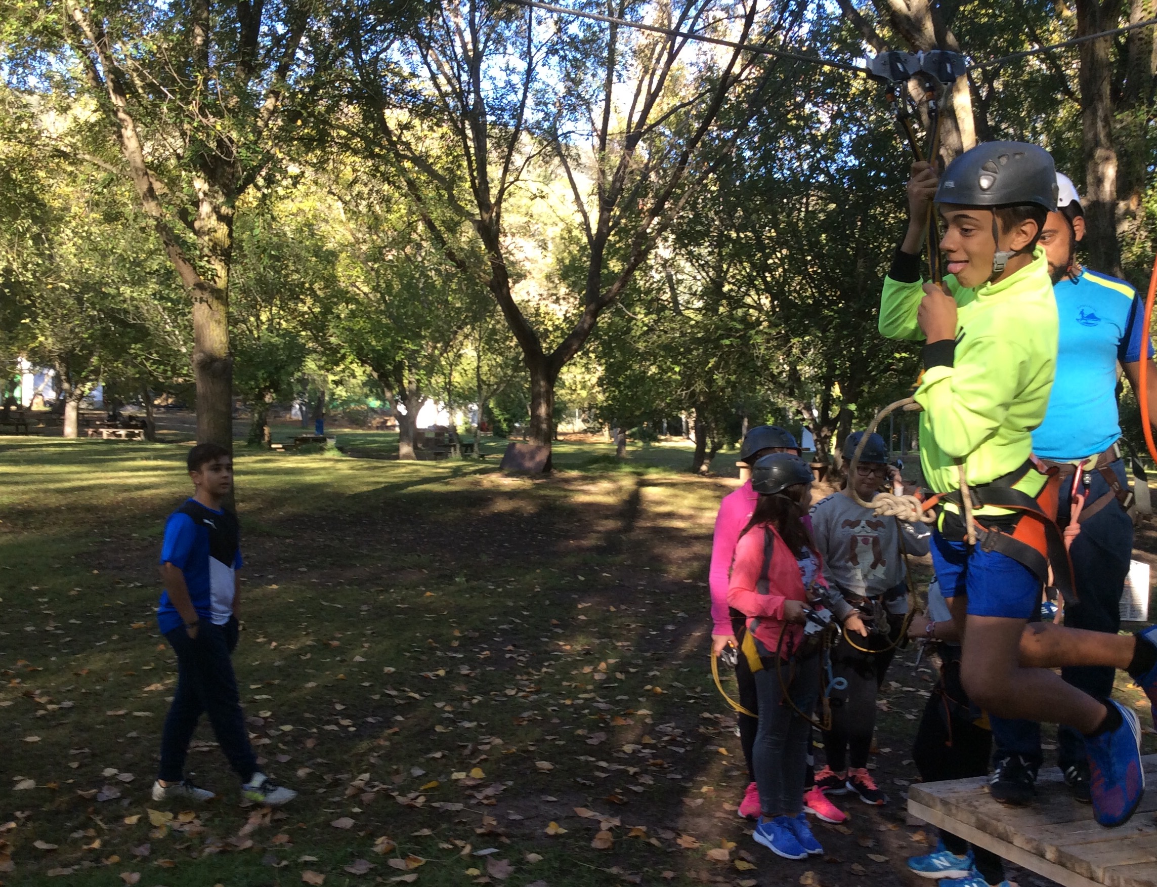 En la mañana de hoy, nuestros chicos y chicas de 1° de ESO han disfrutado de un día diferente rodeados de naturaleza en el Área recreativa Arroyo Molinos. Allí, la empresa Naturaventura y sus excelentes profesionales, han dirigido una actividad de arborismo en el marco de un programa de actividades en la naturaleza subvencionado por la Diputación de Cádiz.