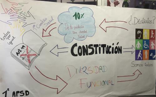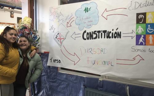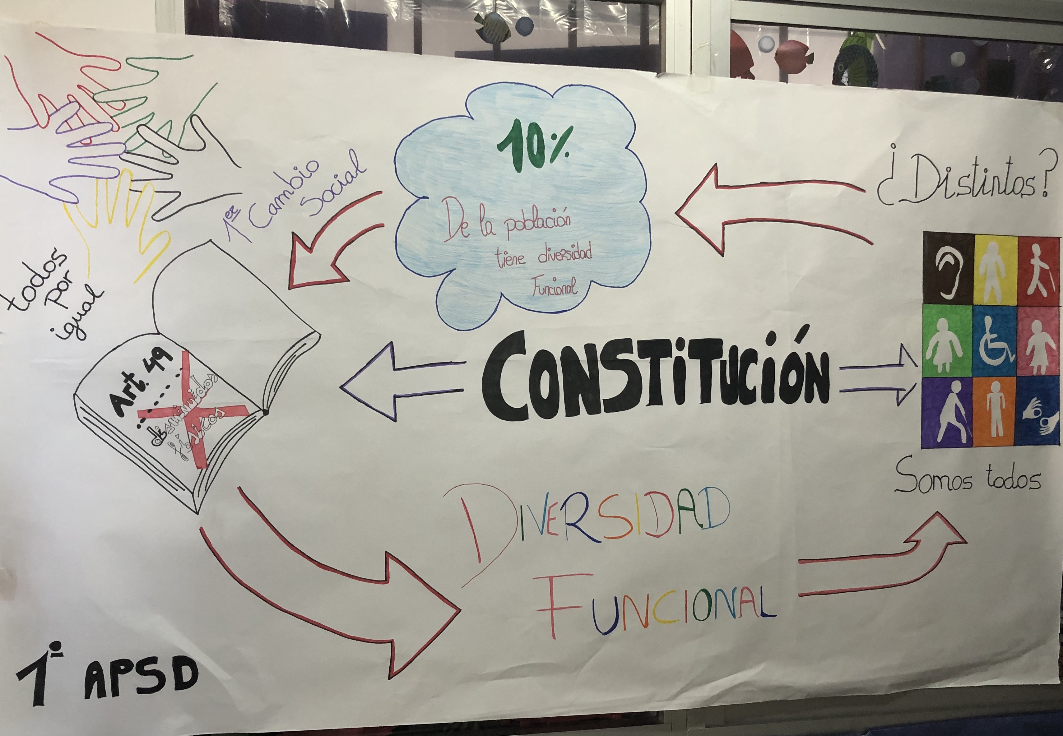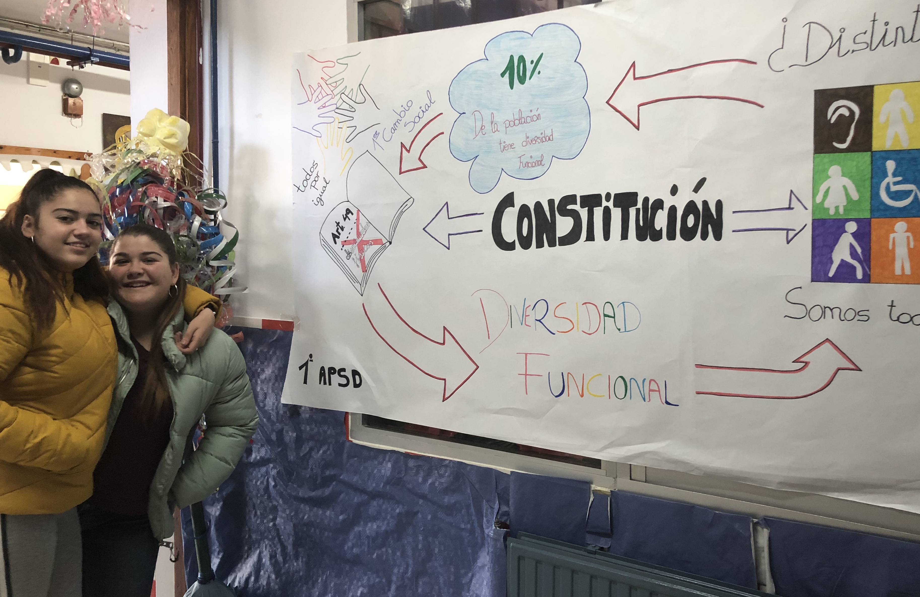 El Departamento de Dibujo con los alumnos y alumnas de 1º ESO ha realizado un mural sobre los derechos fundamentales como la educación, la sanidad, la vivienda y el respeto de las normas. También, el ciclo formativo de Atención a Personas en Situación de Dependencia ha realizado otro para señalar la reforma del artículo 49, relativo a las personas con discapacidad, que ya se recogió en un anteproyecto por el consejo de ministros. Estas actividades, se suman a las demás iniciativas que se han realizado desde otros Departamentos como: Integración Social, Gestión Administrativa, Lengua Castellana y Literatura, Geografía e Historia… Durante esta semana, nuestro alumnado han realizado lecturas, trabajos, debates y analizando los artículos de nuestra Constitución con el objetivo común de fomentar entre los alumnos y alumnas valores ciudadanos y democrático sobre los que se asienta el sistema de libertades y derechos humanos que constituyen la esencia de la convivencia democrática.
