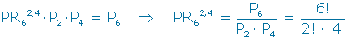 Hemos calculado el número de permutaciones con repetición de seis elementos en las que el primer elemento se repite dos veces y el segundo se repite cuatro veces: P62,4 . Si el elemento que se repite dos veces fuera distinto, obtendríamos a partir de cada permutación, 2! permutaciones distintas. De la misma forma si el elemento que se repite cuatro veces fuera distinto, obtendríamos también 4! permutaciones distintas, obteniendo de esta forma todas las permutaciones posibles con seis elementos distintos, por tanto: |