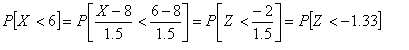 →N( 8 , 1.5). Calcula P[ X < 6]