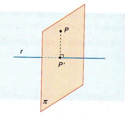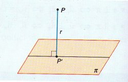 Calculamos el plano π' perpendicular a π y que contiene a r