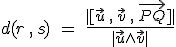 Necesitamos un punto y un vector de cada recta. De r cogemos un punto P y el vector y de s el punto Q y el vector .