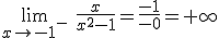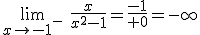 x=-1. Tenemos que calcular el límite cuando x=-1- y el límite cuando x=-1+.
