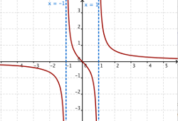 y queremos calcular sus asíntotas verticales, tendremos que estudiar para que valores x2-1=0. En este caso las posibles asíntotas verticales son x=1 y x=-1.