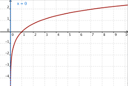 El logaritmo tiene una asíntota vertical x=0; donde empieza o termina el dominio