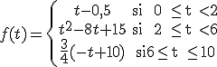 La función f(t) que mostramos a continuación muestra el beneficio de la empresa EXRED (en cientos de miles de euros) a lo largo de los diez primeros años tras su fundación. La función donde t expresa el tiempo en años es: