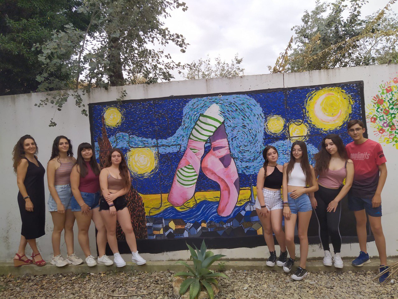 El alumnado de 3º ESO y 4º de ESO, ha embellecido los muros del patio interior y de las pistas del Centro. Han demostrado mucha creatividad y compañerismo. Las profesoras Isabel y María han aplicado los contenidos de la materia fuera del aula, cumpliendo uno de los puntos de la programación didáctica.